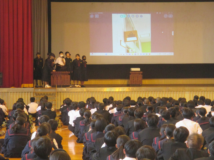 探究スクールカップ 開催しました! 11月29日(金)に探究スクールカップを開催しました。これは,総合的な学習の時間に取り組んできた成果を発表する場になります。それぞれの学年代表が聞き手に分かりやすくプレゼンテーションをしてくれました。仲間とアイディアを出し合い,協力して考え続けることから生まれる新しい価値や可能性の大切さや楽しさを感じ取れるひとときでした。今後も地域や自分に秘められた可能性に気付いてほしいと思います。 « 前の記事 次の記事 »